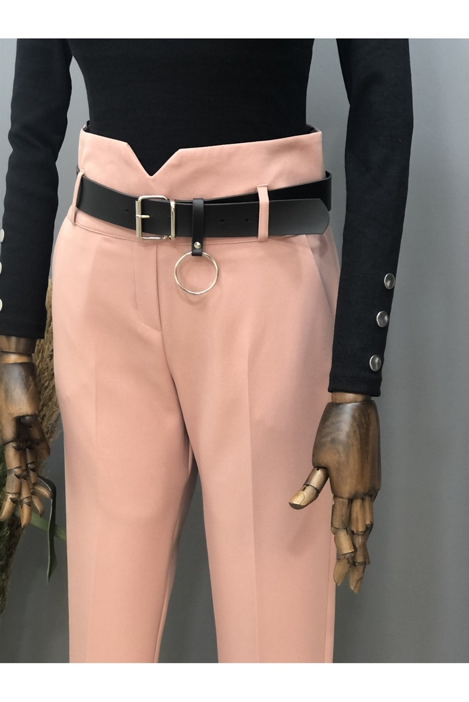 Kadın Bel Detaylı Pudra Pantolon (0286)